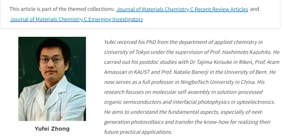 图1.钟宇飞教授入选英国皇家化学学会(RSC)J. Mater. Chem. C2022年新锐科学家专刊