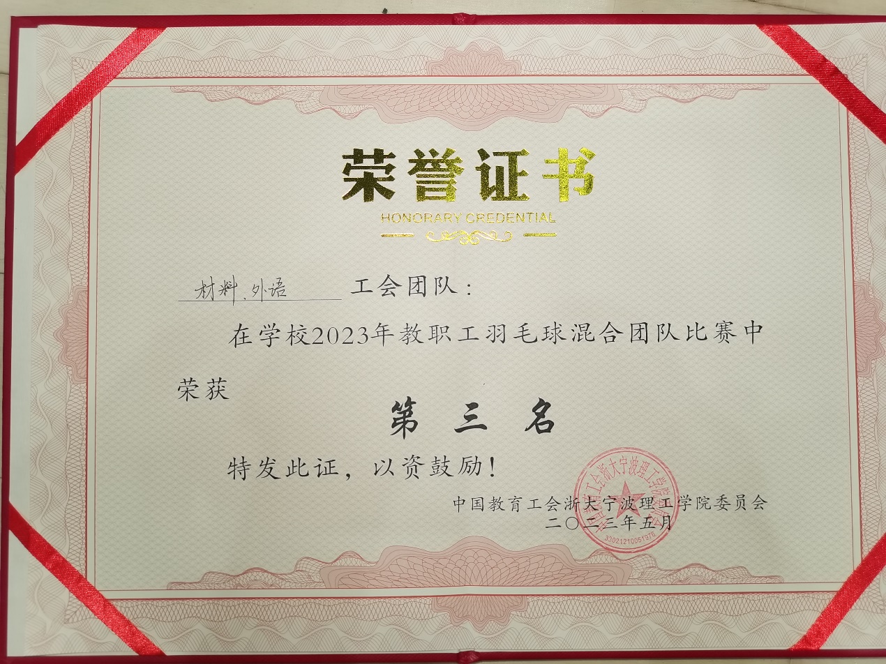 2023年校教工羽毛球混合团体比赛于5月30日落下帷幕,永利yl23411官网分工会与外国语公司分工会组成的羽毛球联队荣获本次校羽毛球团体比赛第三名。本次比赛共有来自机关和各公司的九支队伍参赛,材料与外语羽毛球联队由公司党委书记俞峰担任领队、经理方征平担任教练,参赛队员由钟宇飞、陈飞、邓萌、徐红娜和外语公司五位老师组成。全体队员通力配合、顽强拼搏,经小组赛、淘汰赛激烈角逐,最终取得了优异的成绩,体现出了公司斗志昂扬的风采和精神!