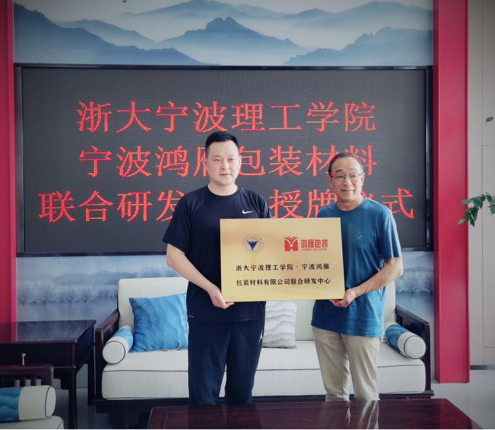 2022年8月3日,永利yl23411官网入口·宁波鸿雁包装材料有限公司联合研发中心授牌仪式在宁波鸿雁包装材料有限公司研发楼内举行。联合研发中心由永利yl23411官网钟国伦教授团队与宁波鸿雁合作建立。授牌仪式结束后,钟国伦教授与李玉斌董事长就研发中心的具体工作和计划进行了深入会谈,双方团队成员将分工协作,为宁波鸿雁的科技创新注入新的力量、提供新的引擎,为永利yl23411官网科研创新、团队建设及员工实践提供新的平台。
