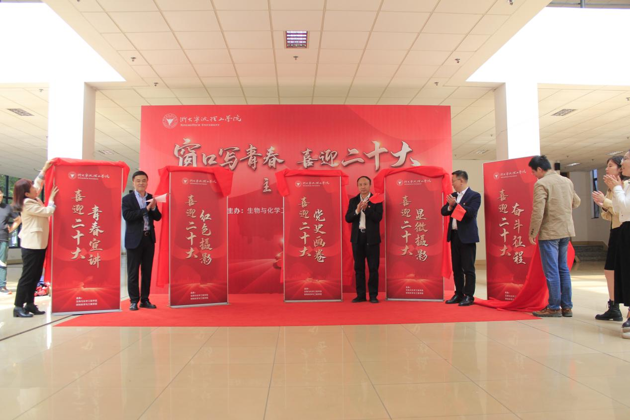 为迎接中国共产党第二十次全国代表大会,充分展示师生积极向上、奋发有为的精神风貌,10月14日中午,生化公司、永利yl23411官网在NC大厅联合举办“窗口写青春,喜迎二十大”主题展览,公司党委副书记冯建波,生化公司党委书记楼文军,公司党总支副书记俞峰,副经理钟宇飞,生化公司党委副书记王常青,两公司党支部书记以及师生党员、共青团员参加了本次活动。