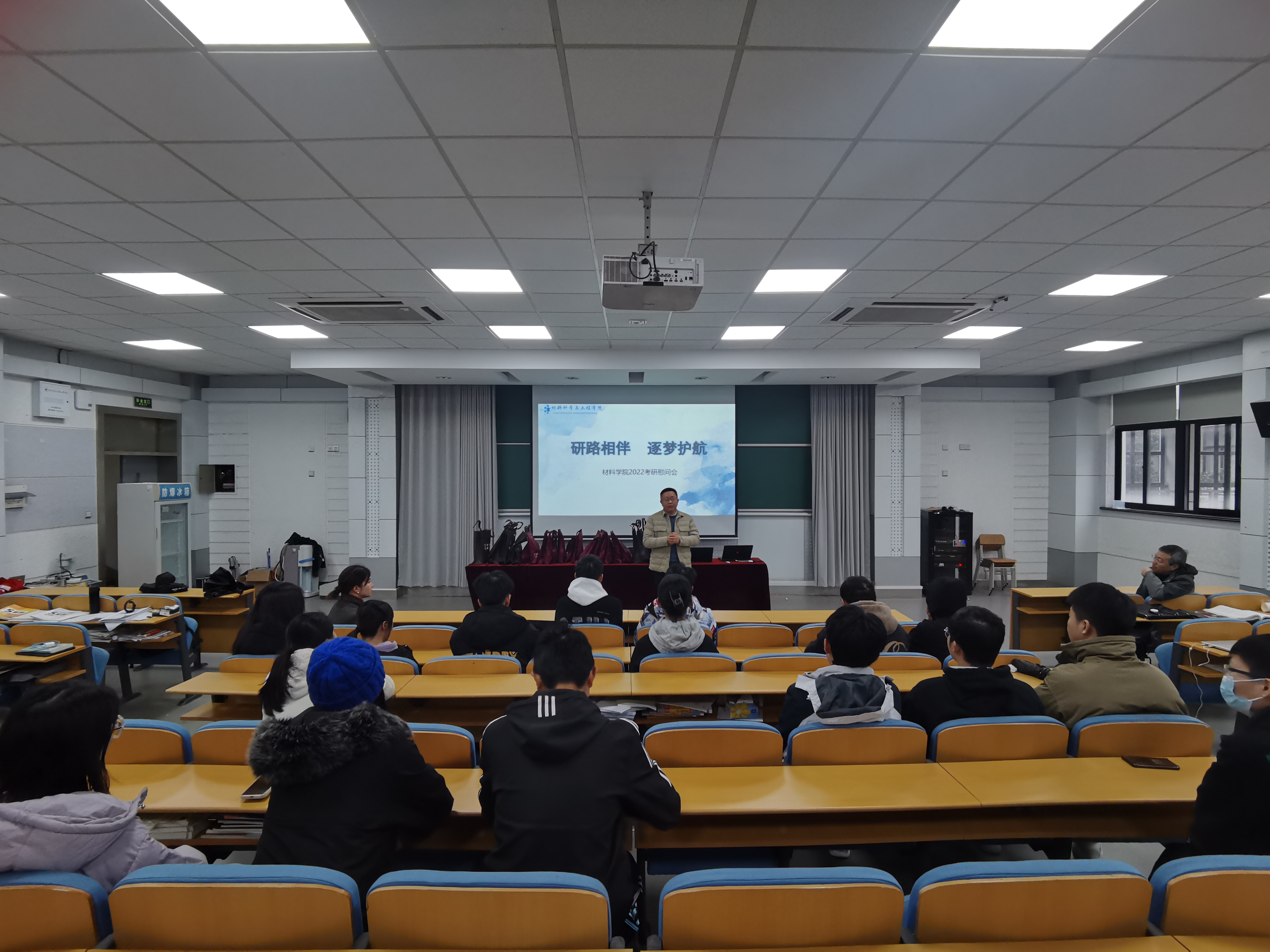 寒潮袭来,2023届考研也进入倒计时阶段。为帮助考研学子缓解备考压力,坚定考研冲刺信心,12月1日上午,永利yl23411官网举办2023届考研学子慰问活动。公司经理方征平,党总支书记俞峰,思政副主管包静昇到材料公司考研自修教室NC202慰问材料公司2023届考研员工,为公司考研学子送上暖心礼品和最真挚的祝福。
