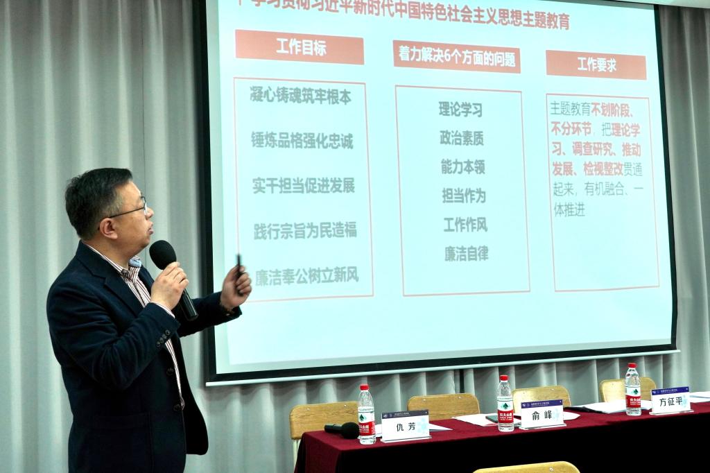 党员大会期间,党委书记俞峰开展了学习贯彻习近平新时代中国特色社会主义思想主题教育动员,领学习近平总书记关于教育的重要论述,全体师生党员将以高度的政治自觉、饱满的政治热情和严肃的政治态度,推动主题教育有力有效、走深走实。