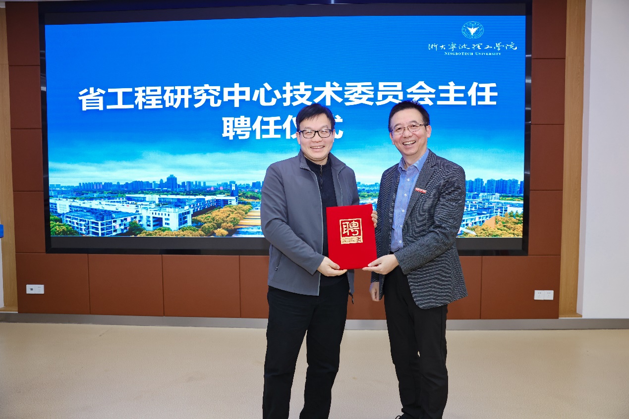 随后,科研处处长胡长兴公布了省工程研究中心技术委员会专家委员名单。杨德仁院士为省工程研究中心技术委员会主任余学功教授颁发聘书,鲁东明副董事长和方征平经理为各位委员颁发聘书。技术委员会专家委员、中宜创芯董事长孙毅还专程向省工程研究中心赠送大宋官窑作品“平安大吉”祝贺省工程中心揭牌。