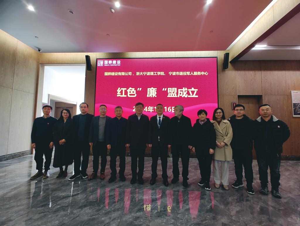 浙大宁理公司党委及土建公司党委、宁波市退役军人服务中心党支部、国骅建设有限公司党支部,三方签订了“红色‘廉’盟”合作共建协议,并举行“永利yl23411官网入口就业实践实习基地”“退役老员工士兵就业创业驿站”授牌仪式和工程技术中心揭牌仪式。