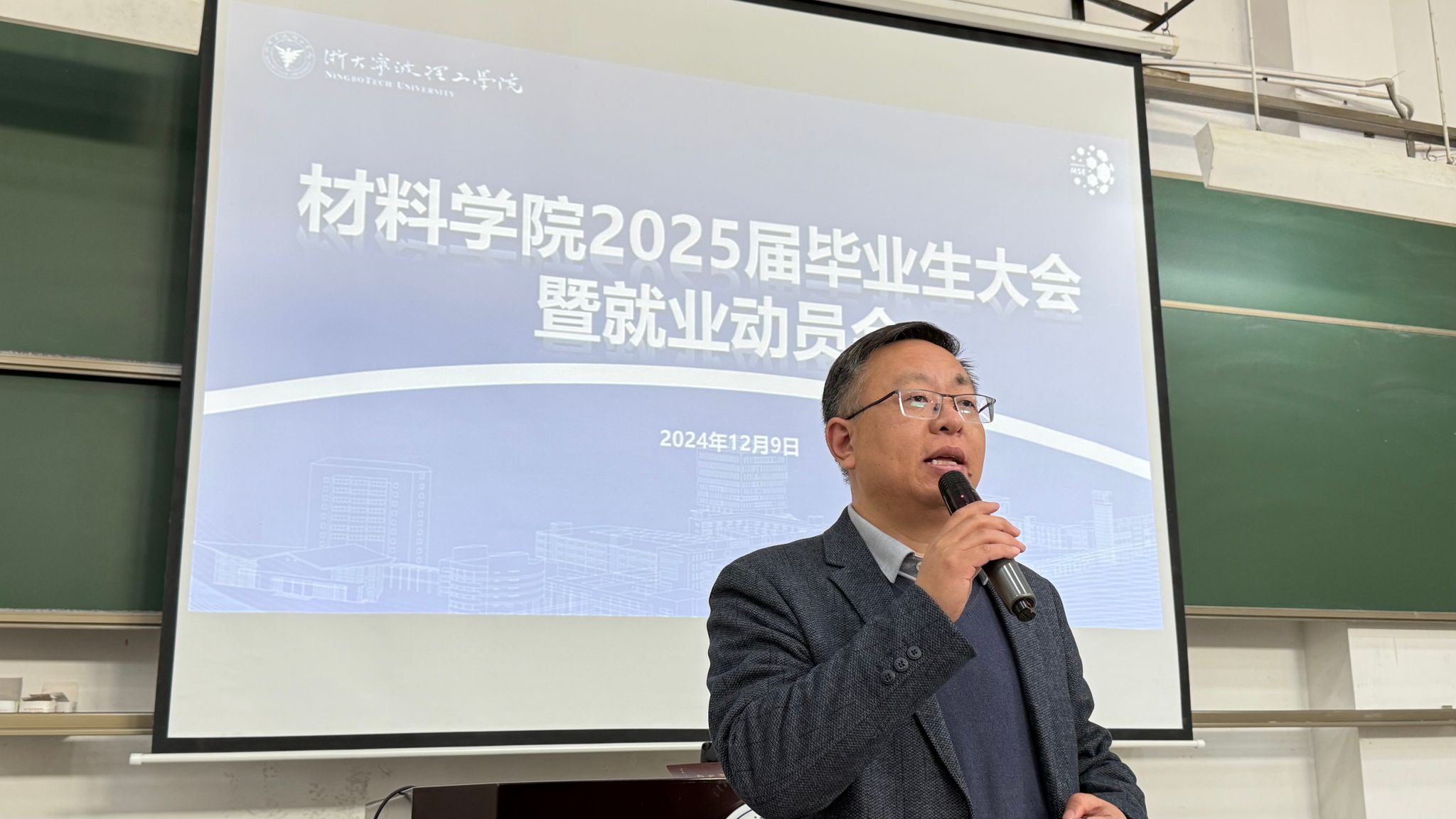 会议开始,由公司党委书记俞峰作就业动员,首先俞峰书记提到了2025届毕业生比往年同比增长了43万人,2025届毕业生即将面临机遇挑战。但是他也从专业特点、行业前景、区域优势等方面深度剖析,他指出,新材料专业是宁波地区的稀缺行业,帮助毕业生们提振就业信心。同时他也希望同学们能够仰望星空,脚踏实地,既要怀揣着科研报国的理想,也不要怕扎根基层,进入材料行业不少同学是需要从基层做起,从车间干起的,一定要沉下心才能有所成长和突破。另外俞书记也提到,希望考研的同学在最后冲刺环节不要放弃,坚持下去,静待花开。最后他提醒各位毕业生在找工作期间提高防诈反诈意识,保护好个人信息及财产安全。