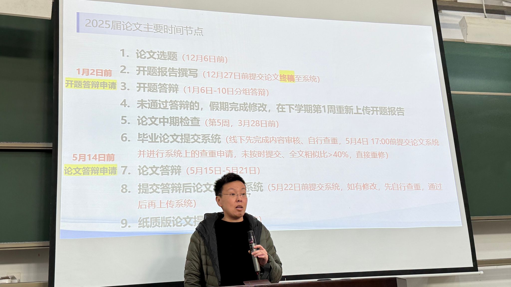 接着由公司教务员吴曦和励琼一两位老师分别讲解了毕业环节解读和毕业论文的时间节点安排等事项,提醒各位毕业生一定牢记各项节点按时完成相关工作以达到顺利毕业。
