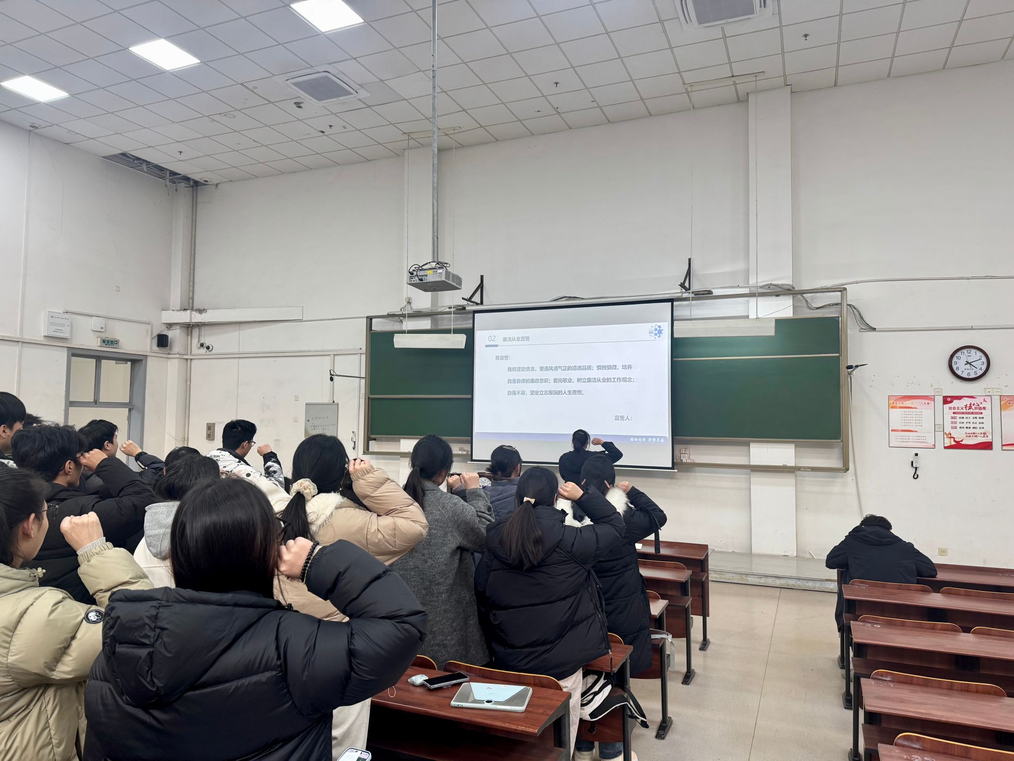随后由公司党委副书记、纪委书记马利文老师作毕业生廉洁从业主题教育,引导同学们树立正确的人生观、价值观,将自己的天赋与社会的需求结合起来,找准职业方向。之后由毕业生党员代表带领全体毕业生们进行廉洁从业宣誓,使廉洁浸润在每一位毕业生心中。