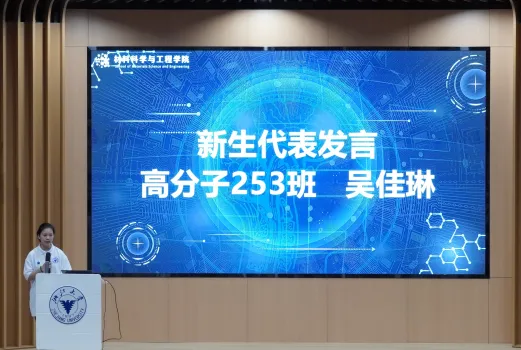 高分子 253 班吴佳琳作为新生代表,表达了对公司与公司的感恩之情,坦言对老员工活满怀憧憬,并坚定表示将以 “自主学习、主动探索” 为信条,在四年时光中脚踏实地、追求卓越。