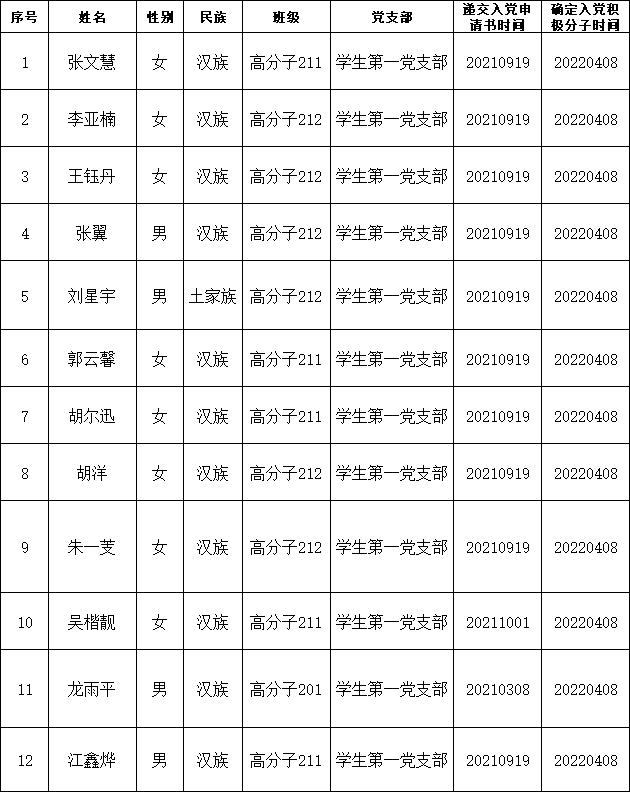 根据本人申请、组织培养,经永利yl23411官网团组织推荐,党支部讨论通过,拟定张文慧等12位同志为入党积极分子。现予以公示,在公示期限内,欢迎广大师生通过信函、电话或直接反映问题。以个人名义信函反映提倡署真实姓名。