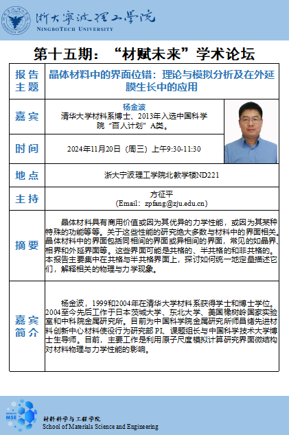 主题:晶体材料中的界面位错:理论与模拟分析及在外延膜生长中的应用