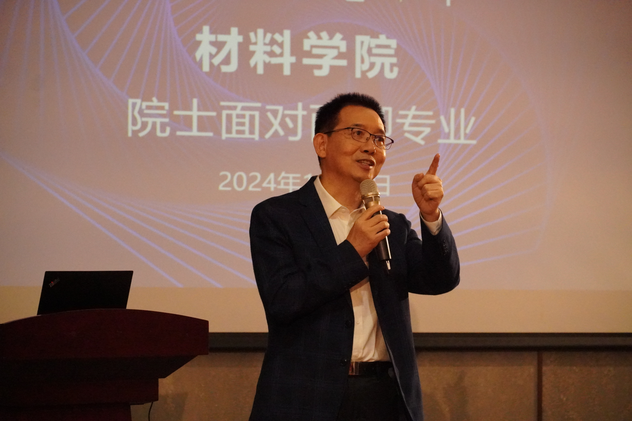杨院士提到材料、信息和能源作为现代社会的三大基石,对各个行业的发展以及国家的整体实力具有至关重要的影响。其中,材料行业的重要性尤为突出,它是许多高科技产业和重大工程的基础支撑。杨院士特别强调了硅材料在科技强国中的重要地位,并结合国家战略性需求,阐述了材料专业在推动科技创新和产业升级中的关键作用。授课过程中,杨院士不仅传授了专业知识,还分享了自己的科研经历和心得。他以自己课题组的研究成果为例,向同学们展示了科研与生产相结合的过程,以及材料科学的专业发展历程与最新前沿。这些生动有趣的实例让同学们对材料科学有了更加直观和深刻的认识。