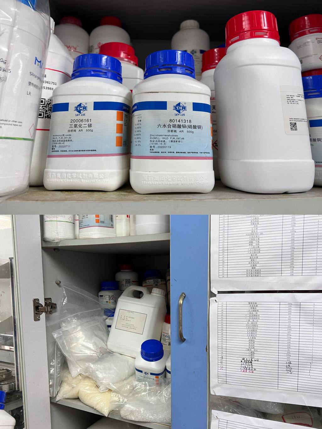 三、ND215西实验室:易制爆化学品应单独存放于专用储存柜内,并需上锁管理;化学品摆放杂乱且叠放。