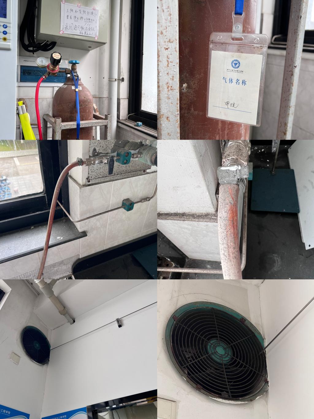 四、ND217实验室:可燃气体气瓶走线不合理且管路老化。