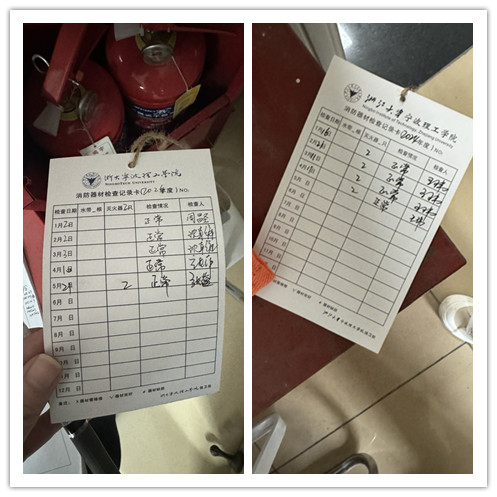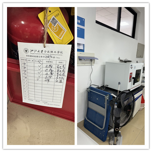 2、ND118实验室:灭火器未按规定定期检查有效情况,《实验室安全检查及整改情况记录本》未定期记录,加热设备未使用时插头未拔掉。