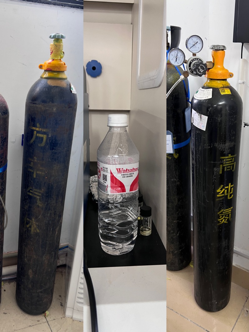 二、ND119实验室:气体钢瓶未正确固定;饮用水瓶需撕去原包装纸,贴上试剂标签。