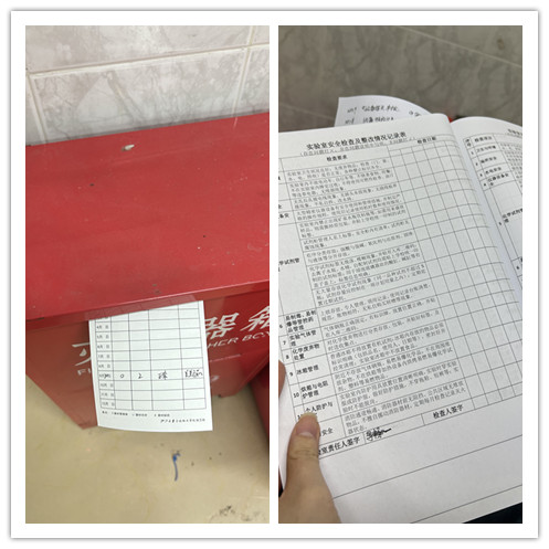 3、ND213实验室:《实验室安全检查及整改情况记录本》未定期记录,未按规定定期检查灭火器有效状况。