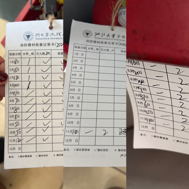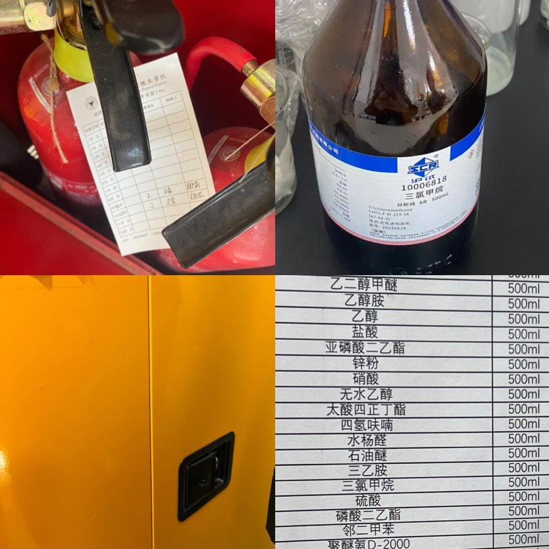 一、NE101实验室:管控化学品应分类、单独存放于试剂柜中,并实行双人双锁管理;灭火器未及时检查有效状况。
